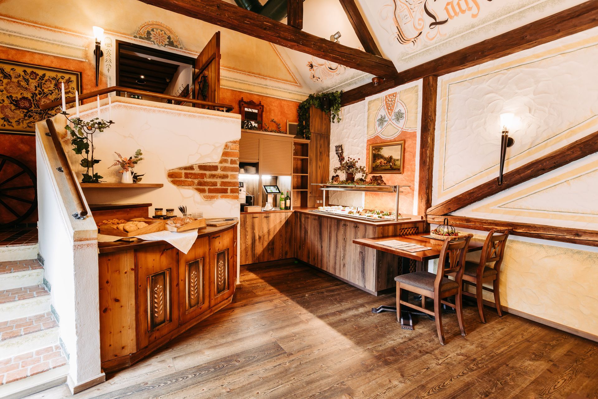 In der Stubn finden Sie gemütliche Tischarrangements, die zum Schlemmen einladen. Ein lichtdurchflutetes Ambiente erwartet Sie in unserem Wintergarten mit großen Glasfronten. Das Kaminzimmer ist eine Augenweide mit vielen dekorativen Details.